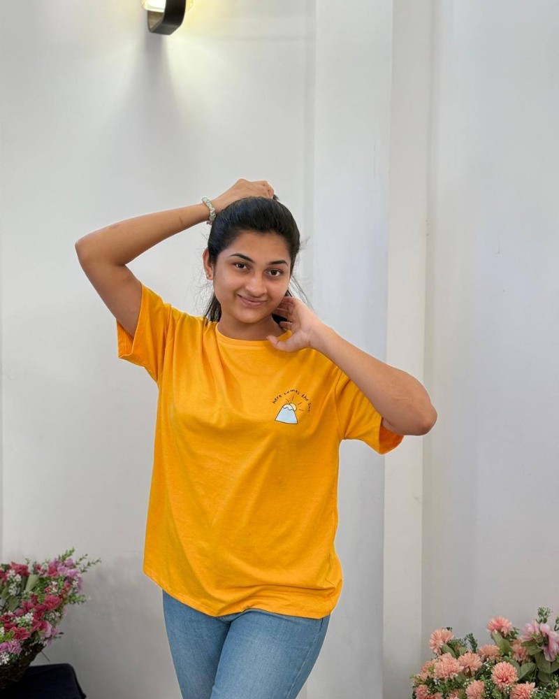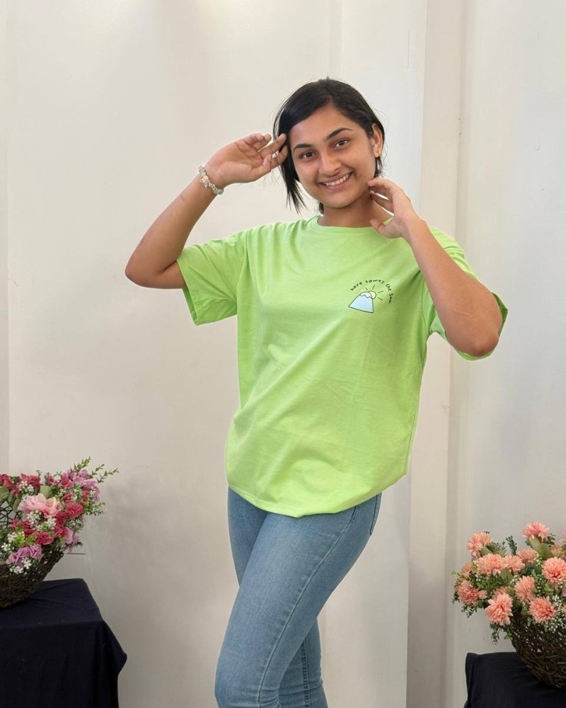Made from a soft and breathable cotton blend, these t-shirts offer ultimate comfort while keeping you stylish. The minimalist “Here Comes the Sun” graphic adds a trendy yet relaxed vibe, making them perfect for casual outings or lounging. Pair them with jeans, skirts, or shorts for an effortlessly cool look.